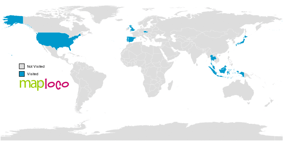 I've been to Czechia, Indonesia, Japan, Malaysia, Portugal, Singapore, Spain, Thailand, United Kingdom, United StatesWhere have you been?