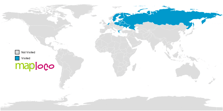 I've been to Belarus, Belgium, Finland, Greece, Latvia, Lithuania, Netherlands, Poland, Russia, Sweden, UkraineWhere have you been?