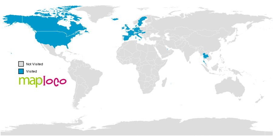 I've been to Austria, Canada, Czechia, Denmark, France, Germany, Holy See (Vatican City State), Hungary, Iceland, Ireland, Italy, Malta, Netherlands, Qatar, Spain, Sweden, Thailand, United Kingdom, United StatesWhere have you been?