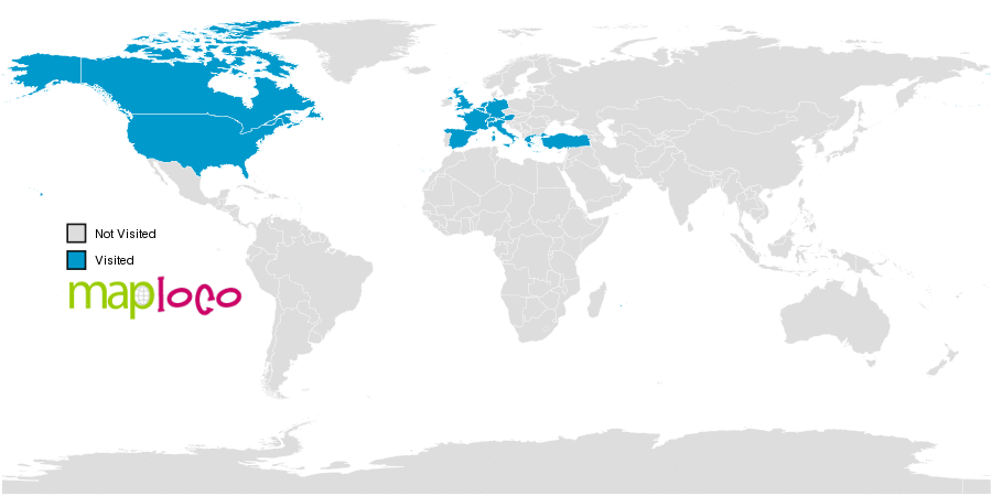 I've been to Austria, Belgium, Canada, France, Germany, Greece, Holy See (Vatican City State), Italy, Luxembourg, Netherlands, Spain, Switzerland, Turkey, United Kingdom, United StatesWhere have you been?