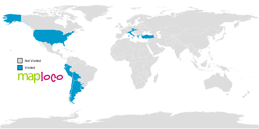 I've been to Argentina, Austria, Bolivia, Chile, Czechia, Ecuador, Greece, Holy See (Vatican City State), Italy, Peru, Slovakia, Turkey, United States, UruguayWhere have you been?