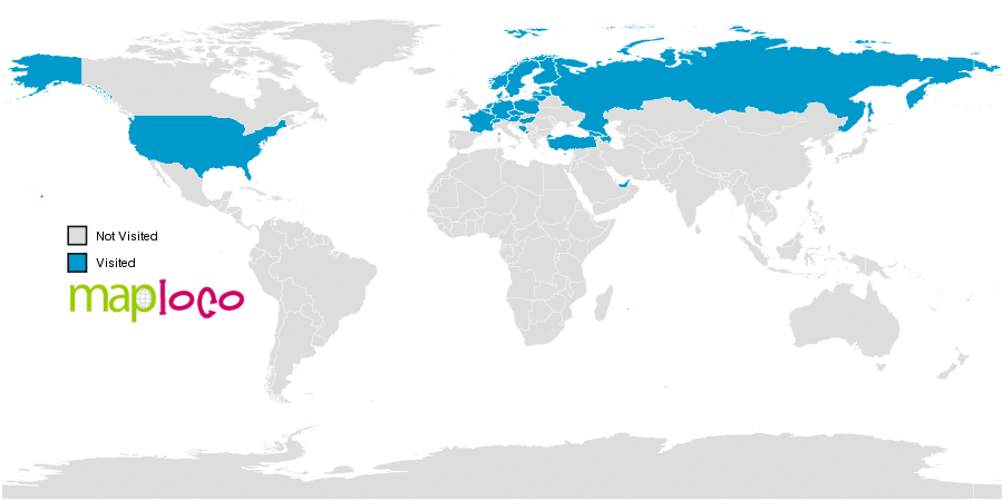 I've been to Austria, Azerbaijan, Belgium, Bosnia and Herzegovina, Cyprus, Czechia, Denmark, Estonia, Finland, France, Georgia, Germany, Hungary, Latvia, Lithuania, Luxembourg, Montenegro, Netherlands, Norway, Poland, Russia, Sweden, Switzerland, Turkey, United Arab Emirates, United StatesWhere have you been?