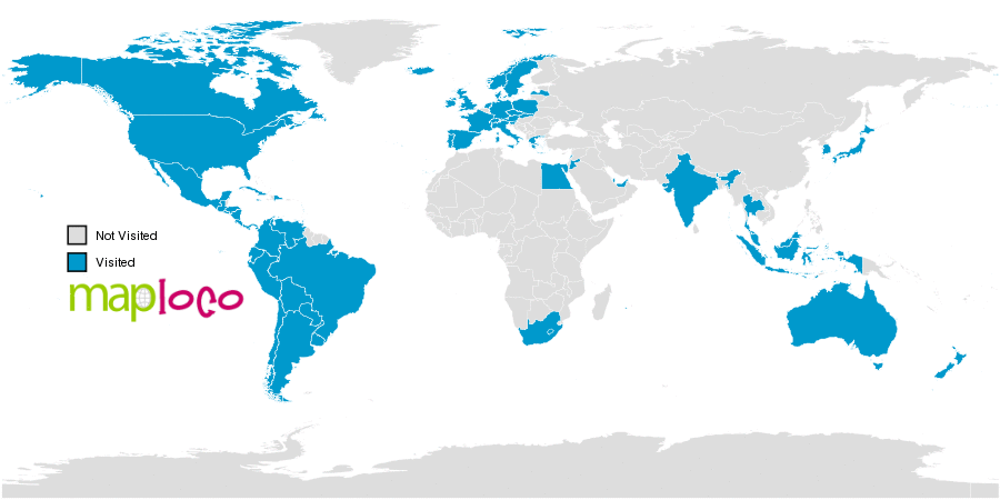 I've been to Argentina, Australia, Austria, Bahrain, Bermuda, Bolivia, Brazil, Canada, Chile, Colombia, Costa Rica, Cuba, Czechia, Denmark, Dominican Republic, Ecuador, Egypt, El Salvador, France, French Polynesia, Germany, Greece, Guatemala, Holy See (Vatican City State), Honduras, Hong Kong, Iceland, India, Indonesia, Ireland, Italy, Jamaica, Japan, Jordan, Latvia, Lebanon, Malaysia, Mexico, Netherlands, New Zealand, Nicaragua, Norway, Panama, Paraguay, Peru, Poland, Portugal, Qatar, Saint Lucia, Slovakia, Slovenia, South Africa, South Korea, Spain, Sweden, Switzerland, Thailand, Trinidad and Tobago, United Arab Emirates, United Kingdom, United States, Uruguay, VenezuelaWhere have you been?