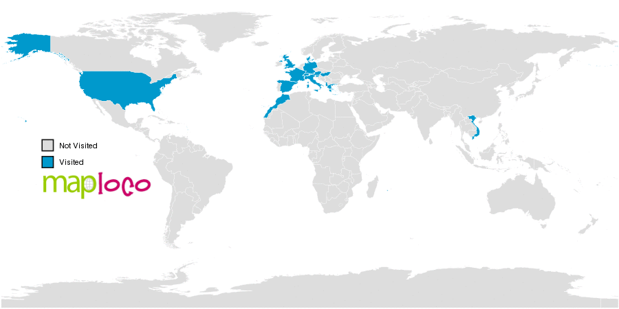 I've been to Albania, Austria, Denmark, France, Germany, Greece, Holy See (Vatican City State), Hungary, Italy, Monaco, Morocco, Slovenia, Spain, Switzerland, United Kingdom, United States, Viet NamWhere have you been?