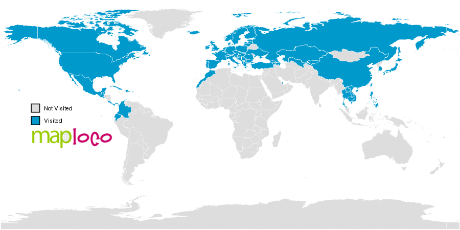I've been to Albania, Andorra, Armenia, Austria, Azerbaijan, Bahrain, Belgium, Belize, Bosnia and Herzegovina, Bulgaria, Cambodia, Canada, China, Colombia, Costa Rica, Croatia, Cuba, Czechia, Denmark, Dominican Republic, Ecuador, El Salvador, Estonia, Finland, France, Georgia, Germany, Greece, Guatemala, Guernsey, Holy See (Vatican City State), Hungary, Iceland, Ireland, Italy, Japan, Jersey, Kazakhstan, Kyrgyzstan, Laos, Latvia, Liechtenstein, Lithuania, Luxembourg, Macedonia, Malta, Mexico, Monaco, Montenegro, Morocco, Netherlands, Norway, Panama, Philippines, Poland, Portugal, Puerto Rico, Qatar, Romania, Russia, San Marino, Serbia, Singapore, Slovakia, Slovenia, South Korea, Spain, Sweden, Switzerland, Taiwan, Thailand, Turkey, Ukraine, United Kingdom, United States, Uzbekistan, Viet NamWhere have you been?