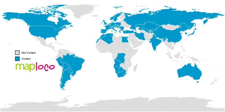I've been to Algeria, Angola, Argentina, Australia, Austria, Belgium, Bolivia, Botswana, Brazil, Bulgaria, Canada, Chile, China, Cyprus, Czechia, Democratic Republic of the Congo, Denmark, Egypt, France, Germany, Greece, Holy See (Vatican City State), Hungary, India, Iran, Israel, Italy, Japan, Kazakhstan, Kyrgyzstan, Liechtenstein, Luxembourg, Monaco, Morocco, Namibia, Netherlands, Norway, Palestine, Paraguay, Peru, Poland, Portugal, Romania, Russia, Slovakia, South Africa, South Korea, Spain, Sweden, Switzerland, Tajikistan, Tunisia, Turkey, United Kingdom, United States, UzbekistanWhere have you been?