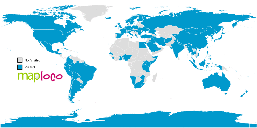 I've been to Afghanistan, Albania, Antarctica, Argentina, Australia, Austria, Belgium, Benin, Bolivia, Brazil, Bulgaria, Burundi, Canada, Chile, China, Colombia, Cuba, Czechia, Denmark, Ecuador, Egypt, Fiji, Finland, France, Germany, Ghana, Greece, Guatemala, Honduras, Hungary, Iceland, India, Indonesia, Iran, Iraq, Ireland, Israel, Italy, Japan, Kenya, Kiribati, Kyrgyzstan, Lebanon, Luxembourg, Malaysia, Malta, Mexico, Micronesia, Mongolia, Myanmar, Namibia, Nepal, Netherlands, New Zealand, Nigeria, North Korea, Norway, Peru, Philippines, Poland, Puerto Rico, Qatar, Romania, Russia, Rwanda, Samoa, Saudi Arabia, Senegal, Sierra Leone, Solomon Islands, Somalia, South Africa, South Korea, Spain, Sweden, Switzerland, Taiwan, Tanzania, Thailand, Tonga, Trinidad and Tobago, Turkey, Uganda, Ukraine, United Kingdom, United States, Uruguay, Viet Nam, ZimbabweWhere have you been?